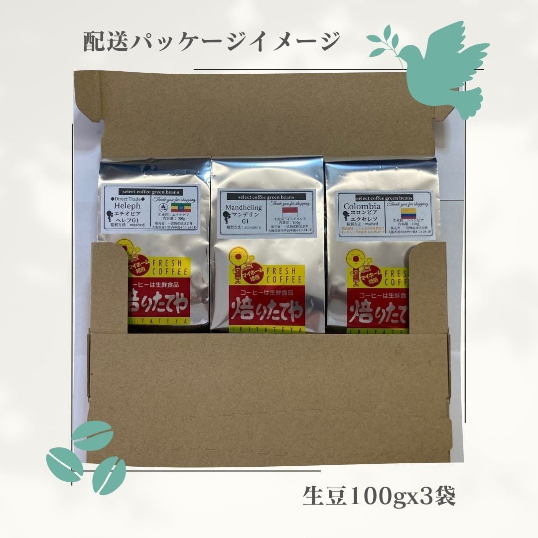 *梱包の関係上、1回につき生豆のみで最大300g(100gx3)までの配送とさせていただきます。